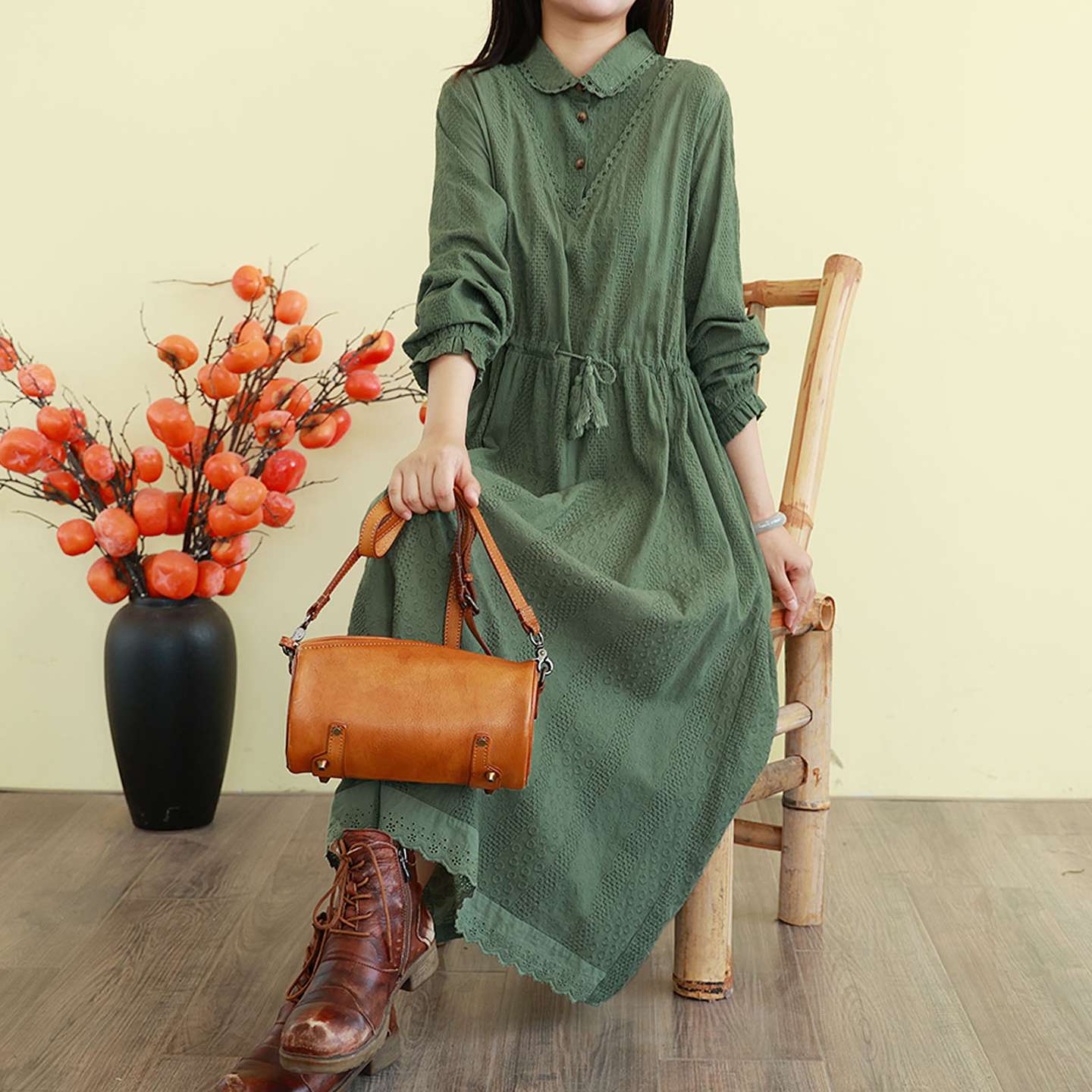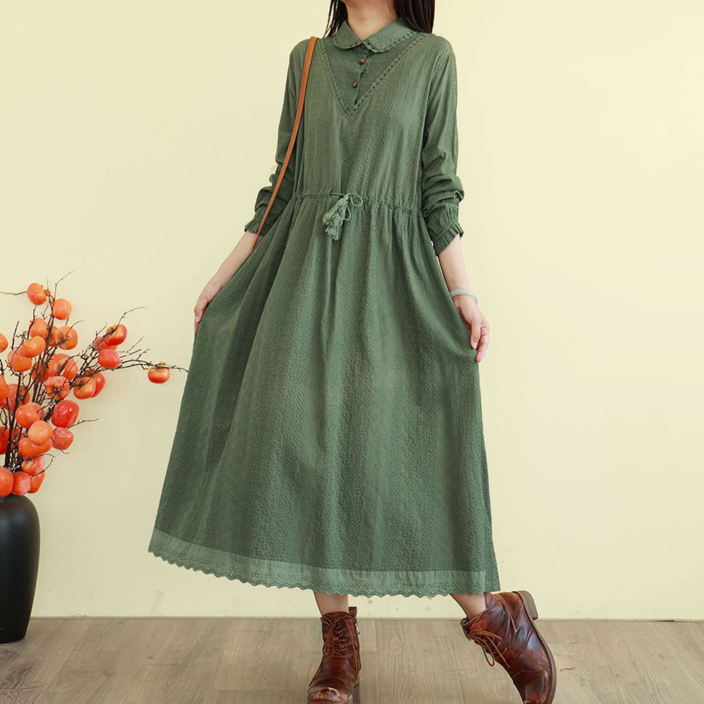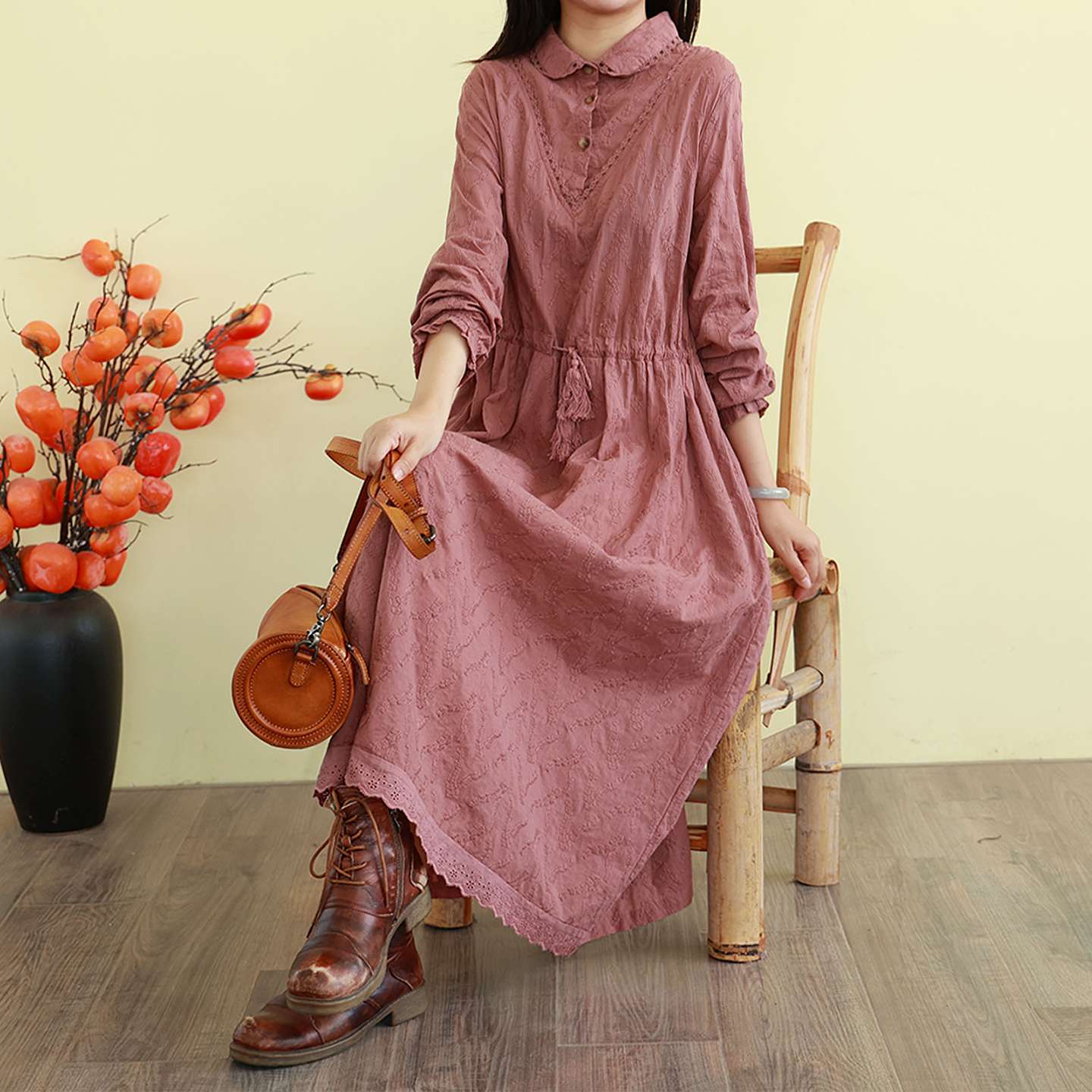 پیراهن طرح ژاکارد دوزی شده رترو استایل